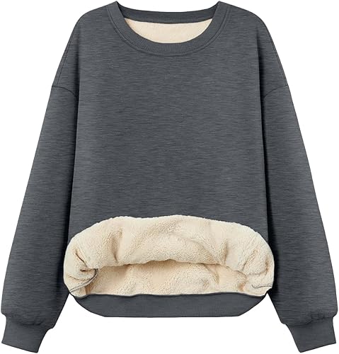 Women's Winter Fleece Sherpa Lined Sweatshirt Crewneck Long Sleeve Pullover Hoodies Outfits Clothes 2024