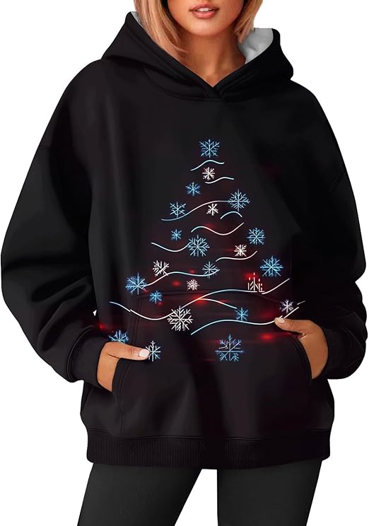 Womens Long Sleeve 2024 Hoodies Loose Xmas Print Comfy Round Neck Tshirt With Pocket Slim Pullover