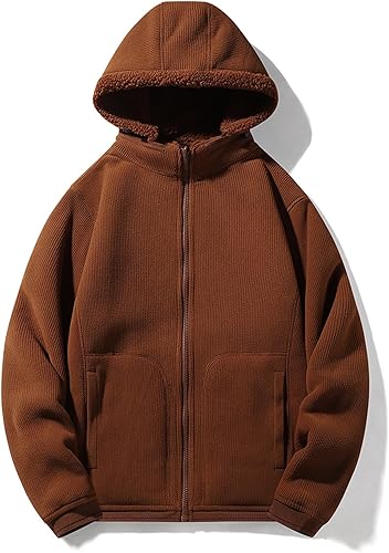 Men's Winter Zip Up Hoodie Sherpa Fleece Sweatshirt Warm Thick heavyweight Coats
