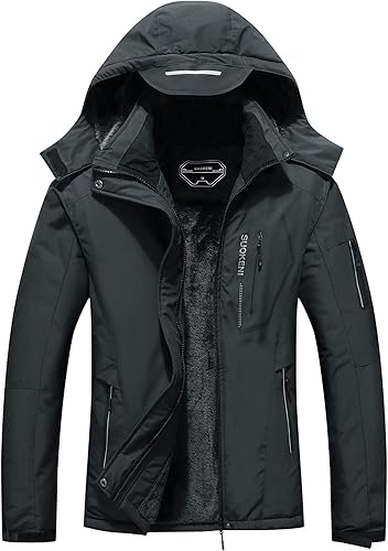 Men's Winter Coats Water Resistant Ski Snow Jacket Warm Fleece Jacket Parka Raincoats With Multi-Pockets