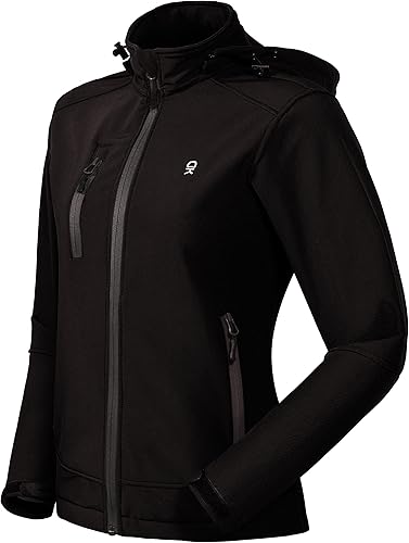 Women’s Softshell Jacket, Ski Snowboarding Jacket with Removable Hood, Fleece Lined