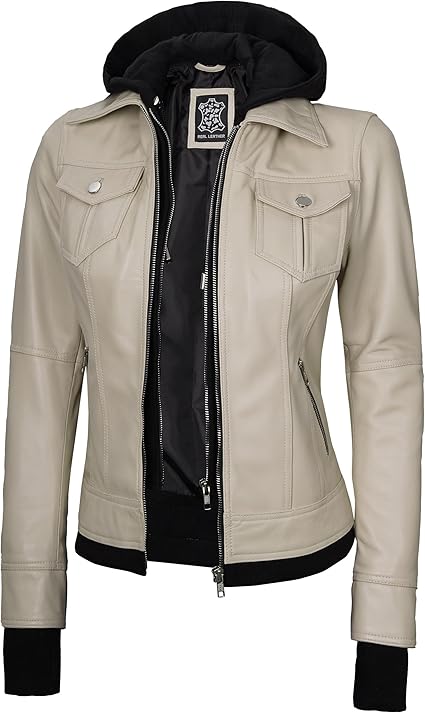 Leather Bomber Jacket Women - Real Lambskin Womens Leather Jackets with Removable Hood