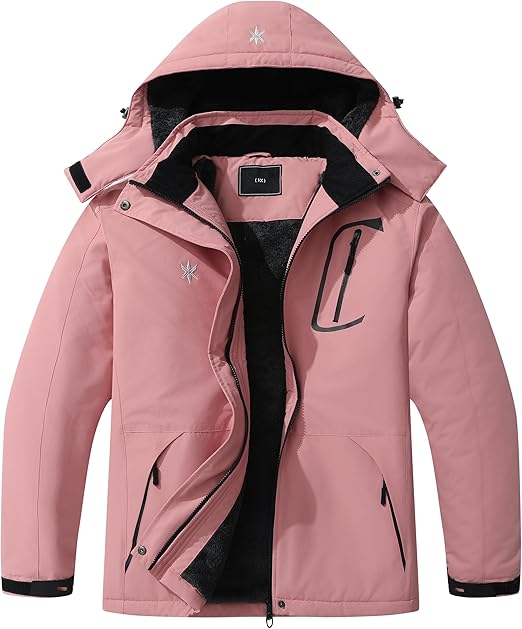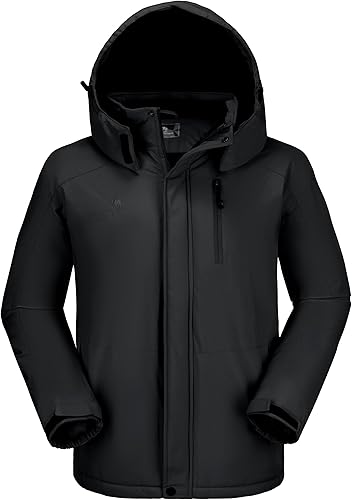 Mens Winter Jacket Waterproof Warm Snow Ski Jackets Faux Fur Fleece Rain Coats with Removable Hood