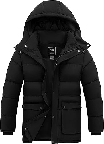 Men's Warm Winter Jacket Waterproof Puffer Coat Windproof Quilted Parka with Detachable Hood