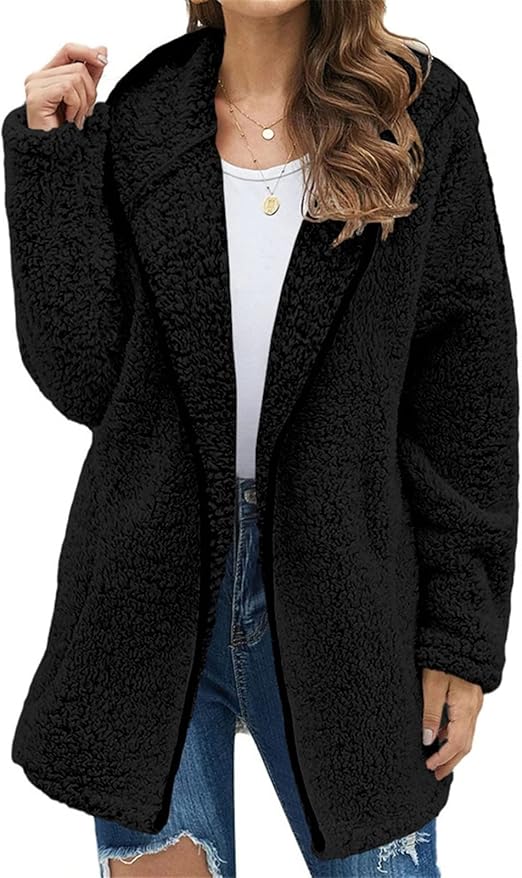 Fleece Jacket Women Flannel Sherpa Jacket Winter Long Faux Fur Coat Zip Up Hoodie Long Cardigan Sweaters with Pockets