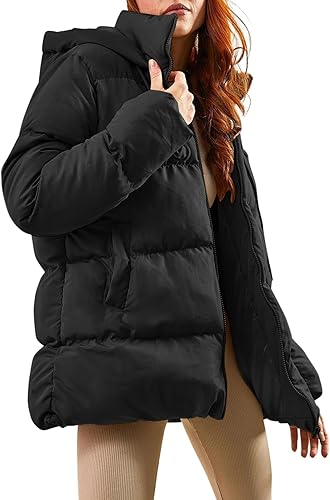 Women's Winter Puffer Jacket Oversized Zip Up Long Quilted Coats Lightweight Stand Collar Padded Jackets with Hood