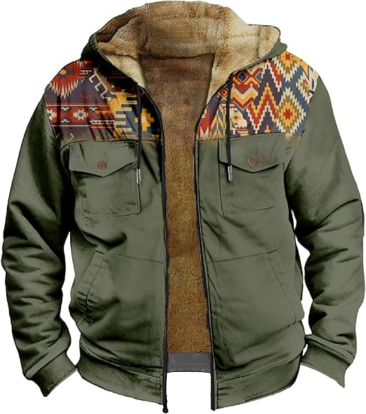 Fleece Hoodie Men Oversized Long Sleeve Comfrt Hoodie: Aztec Coats Fleece Comfy Warm Jacket Outerwear
