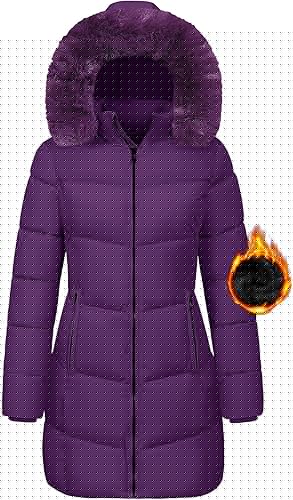 Womens Winter Coats Puffer Down Parka Thicken Warm Hooded Jacket Fleece Lined Outwear with Removable Faux Fur Hood