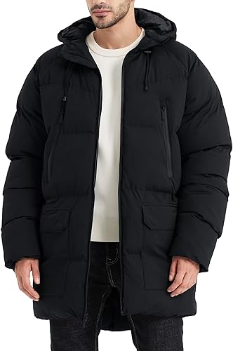 Men's Long Winter Coat Hooded Warm Quilted Jacket Water-resistant Cold Weather Parka